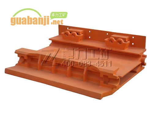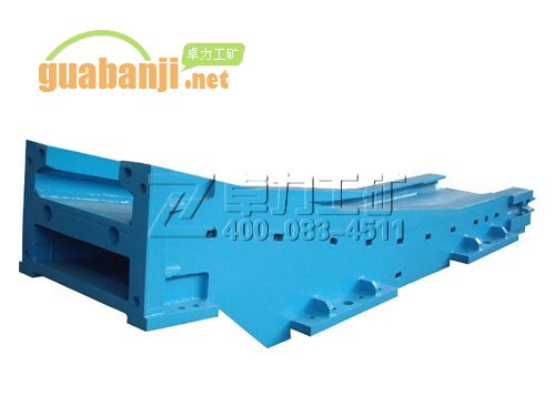 溜槽分為中部槽、調整溜槽和過渡溜槽,溜槽是整個刮板運輸機的機身,有一定的強度,有較高的耐磨性。中部槽又叫標準槽,其規格為1500*620*180,每節溜槽可偏轉30。