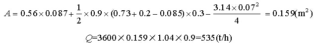 當給定工作面刮板輸送機的生產(chǎn)能力,驗算溜槽最大物料斷面面積A':